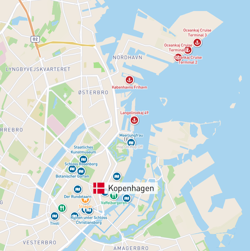 Neben vielseitigen Empfehlungen für individuelle Ausflüge zeigen wir auch die Liegeplätze der Schiffe direkt im Hafenplan – ideal für eine einfache und gezielte Urlaubsplanung.